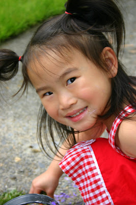 Later that afternoon we played around the house and in the front yard. Here is Sophie Wei below running away from me as I sit on the front porch. I was trying to get photos of her and she thought it was funny to run away.